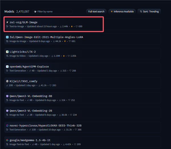 快科技1月16日消息,今日,智谱宣布,其联合华为开源的新一代图像生成模型GLM-Image,在开源不到24小时内,登上全球知名AI开源社区Hugging Face(抱抱脸)榜单全球第一。