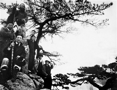 1936年春,徐悲鸿(左下)与张大千(左上)在黄山巧遇