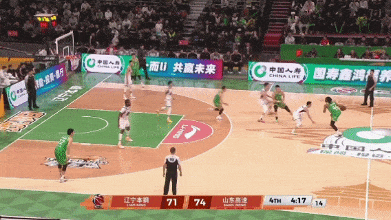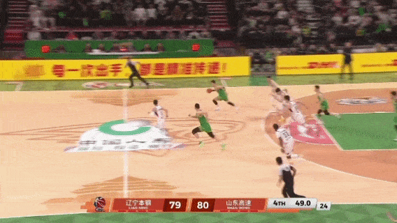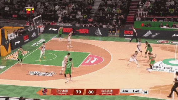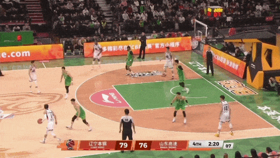 还在关键时刻,在防守端干扰了赵继伟的反超三分,